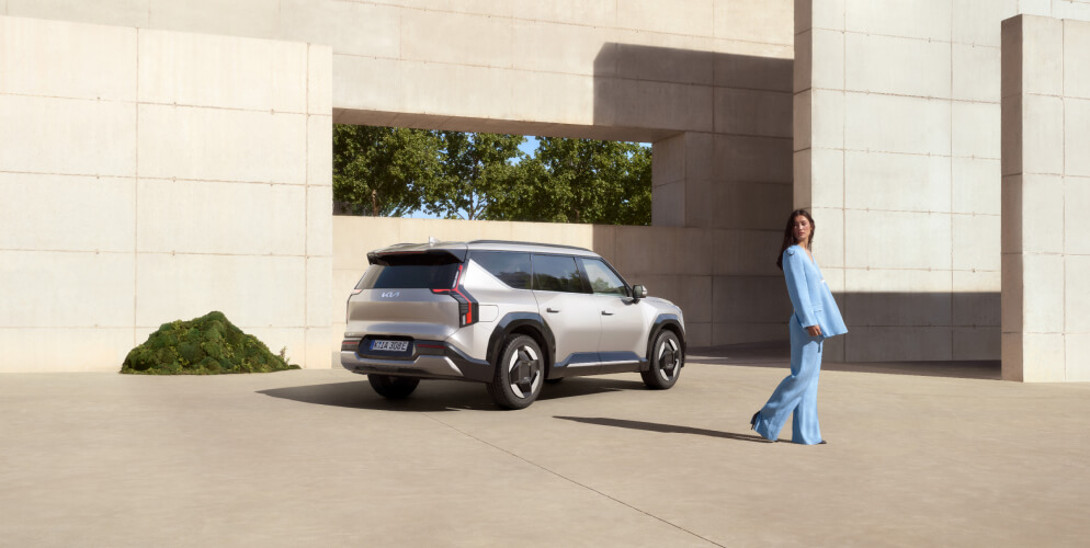 Selbstbewusst und vielseitig überzeugt das Design der EV9-Air-Ausstattung durch elegante, klare Linien, die die raffinierte Form des Fahrzeugs unterstreichen und seinen dynamischen, anspruchsvollen Auftritt betonen – fokussiert auf die wesentlichen Funktionen.